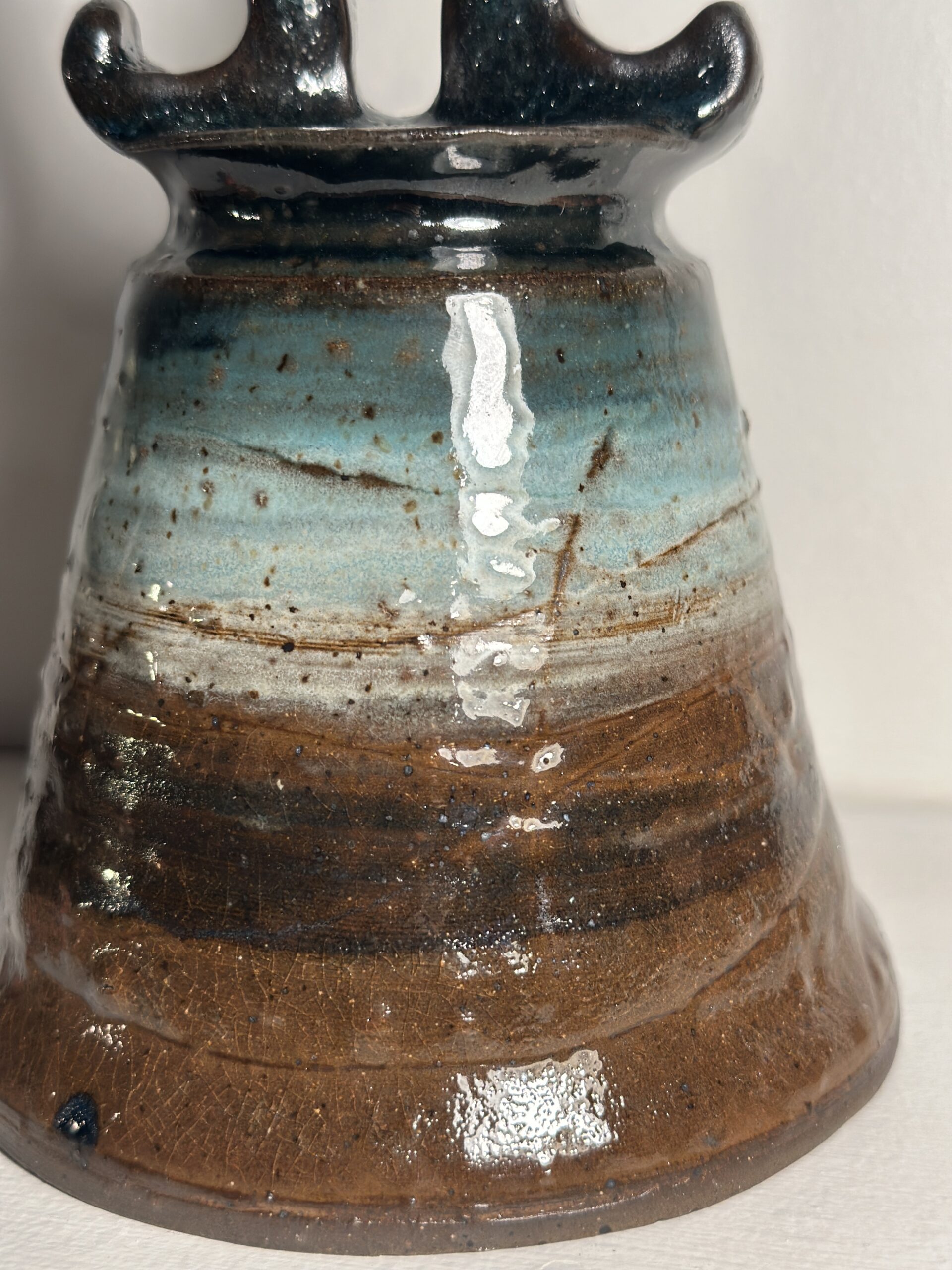 Beautiful deep rich tone, made of Kentucky clay. Large bell, 5″. 7″ tall. Brown Bear is a rich, iron-bearing stoneware that fires to a warm, chocolate brown from Kentucky Mudwork. it has just enough grit to feel alive in the hand, but it’s refined enough to show every carved line and fingerprint.