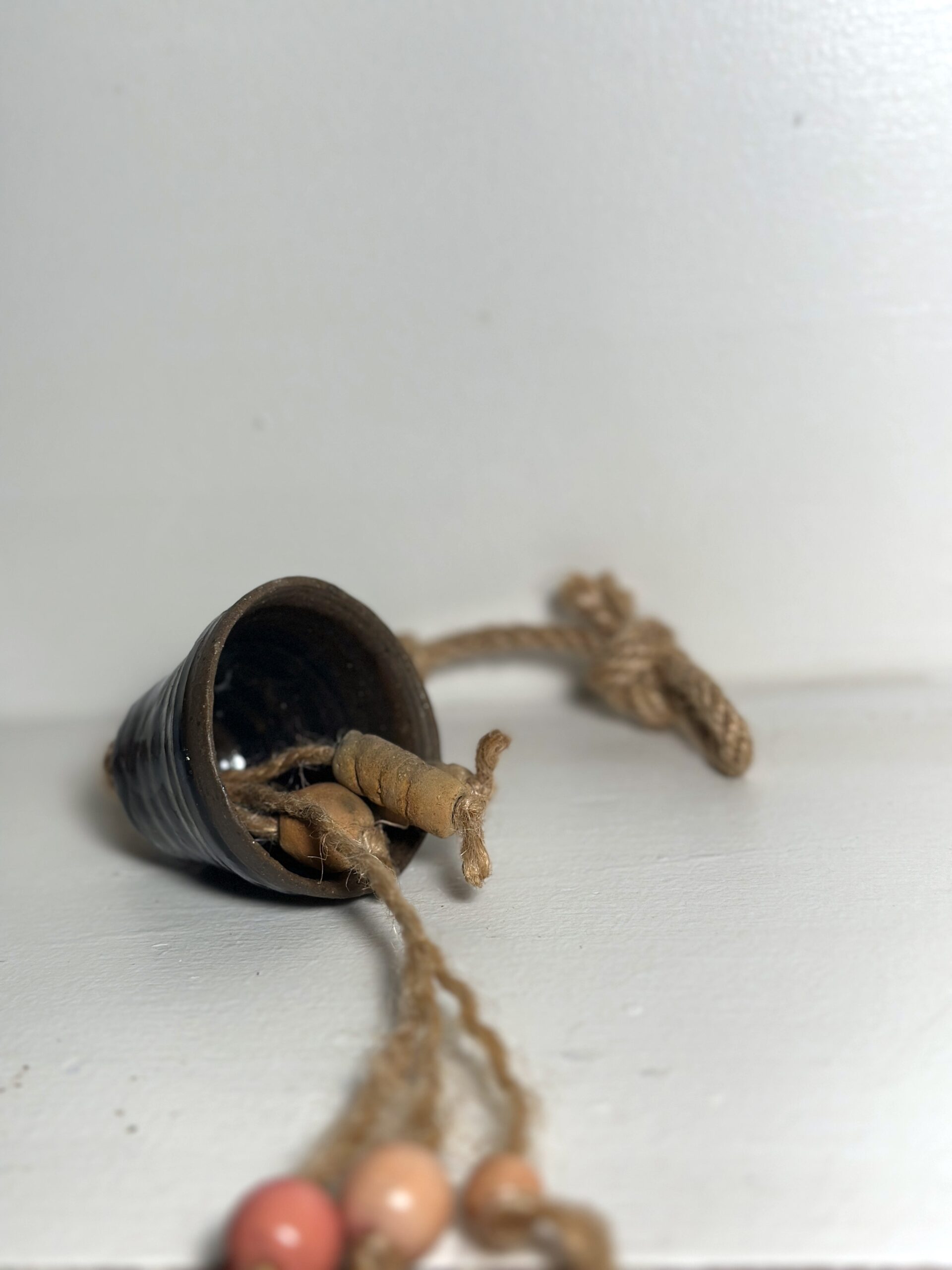 Beautiful Kentucky Mudworks Elk Horn clay with celedon storm glaze. They have a nice chiming sound with a jute rope adorned with vintage clay beads. I like to use them for my doors, they each have a unique ring. Small 2″ tall x 1-1/2″ wide. Think Ancient Modern sound. 🙂 Shipping Included!