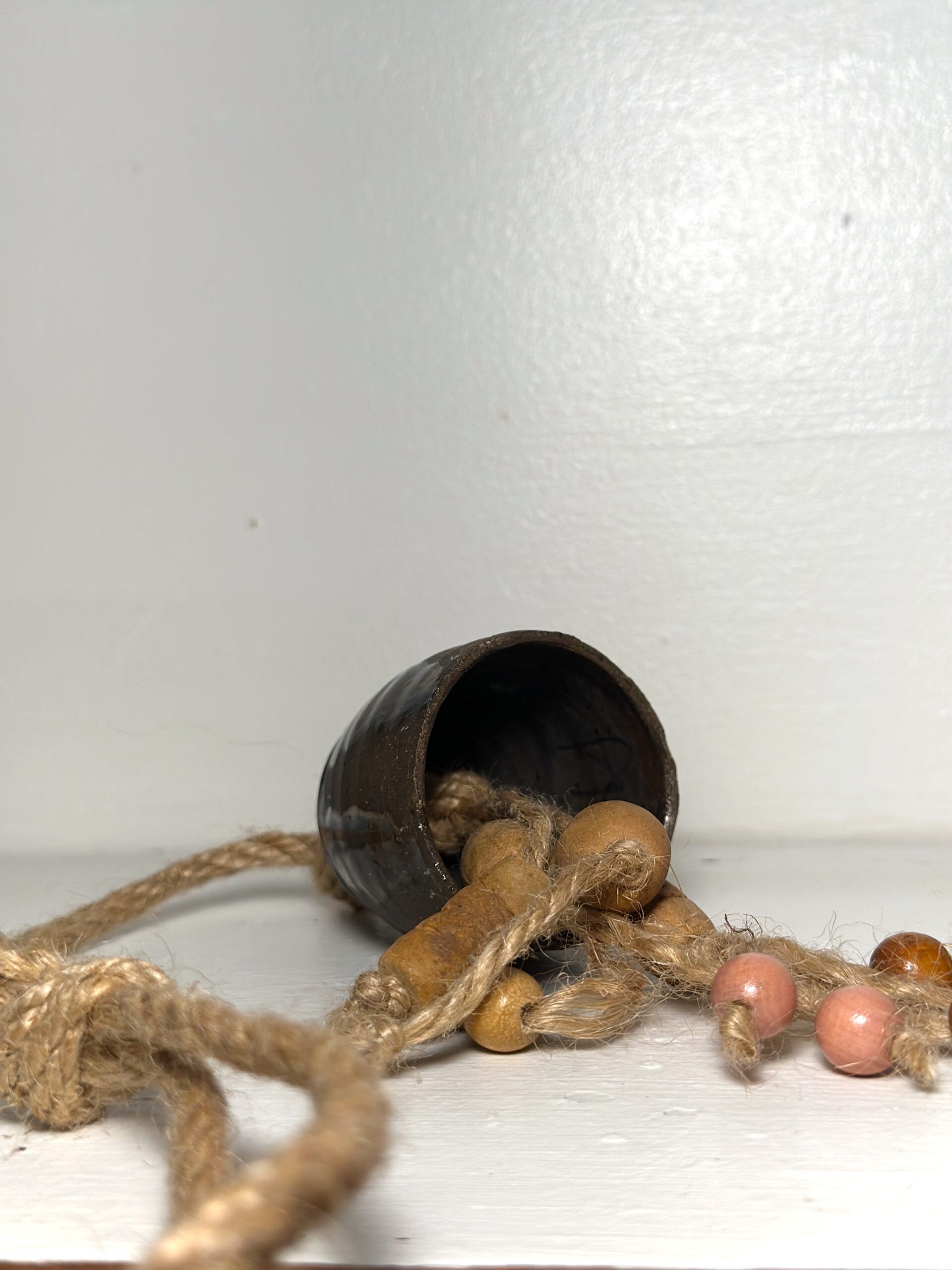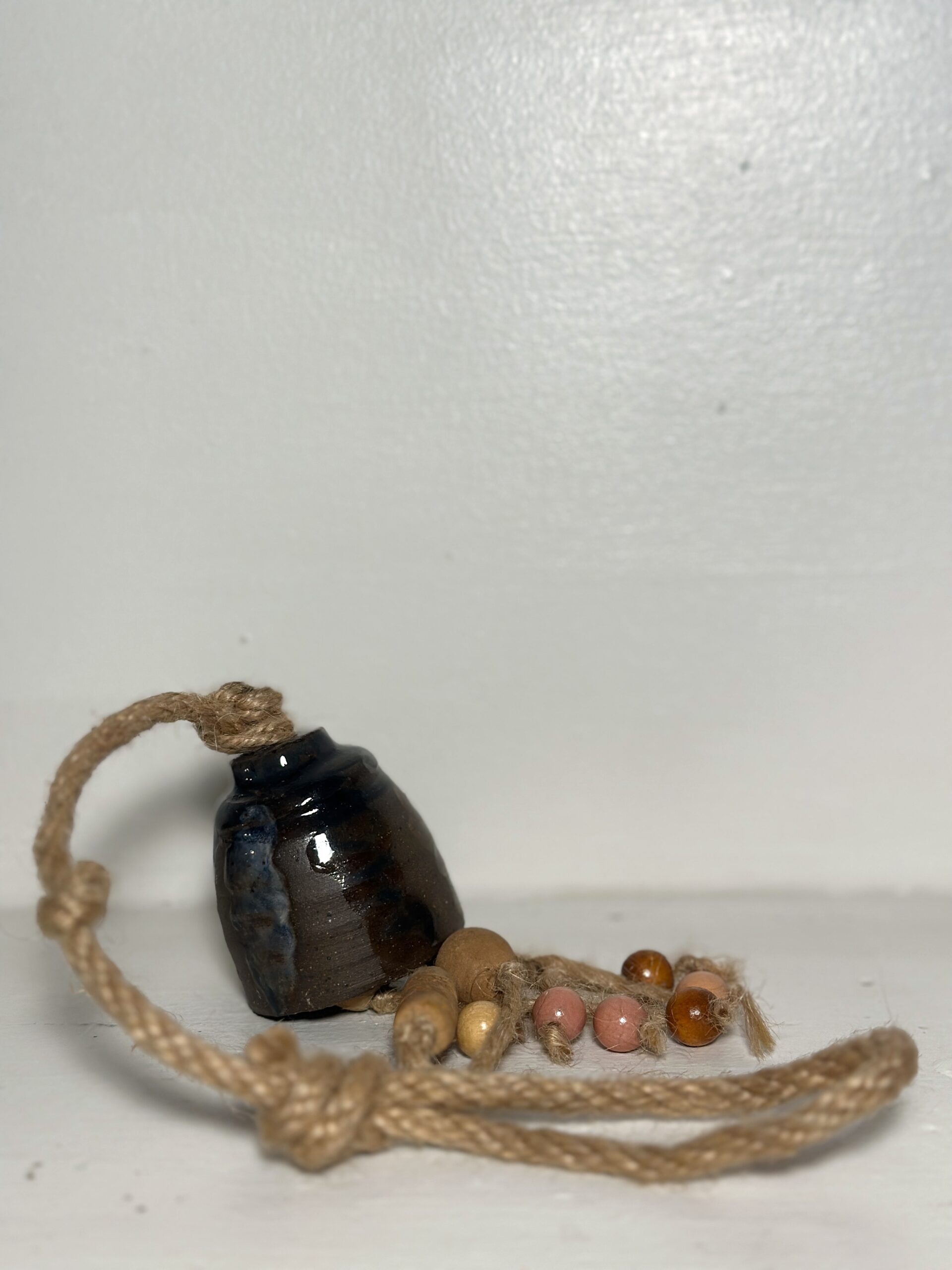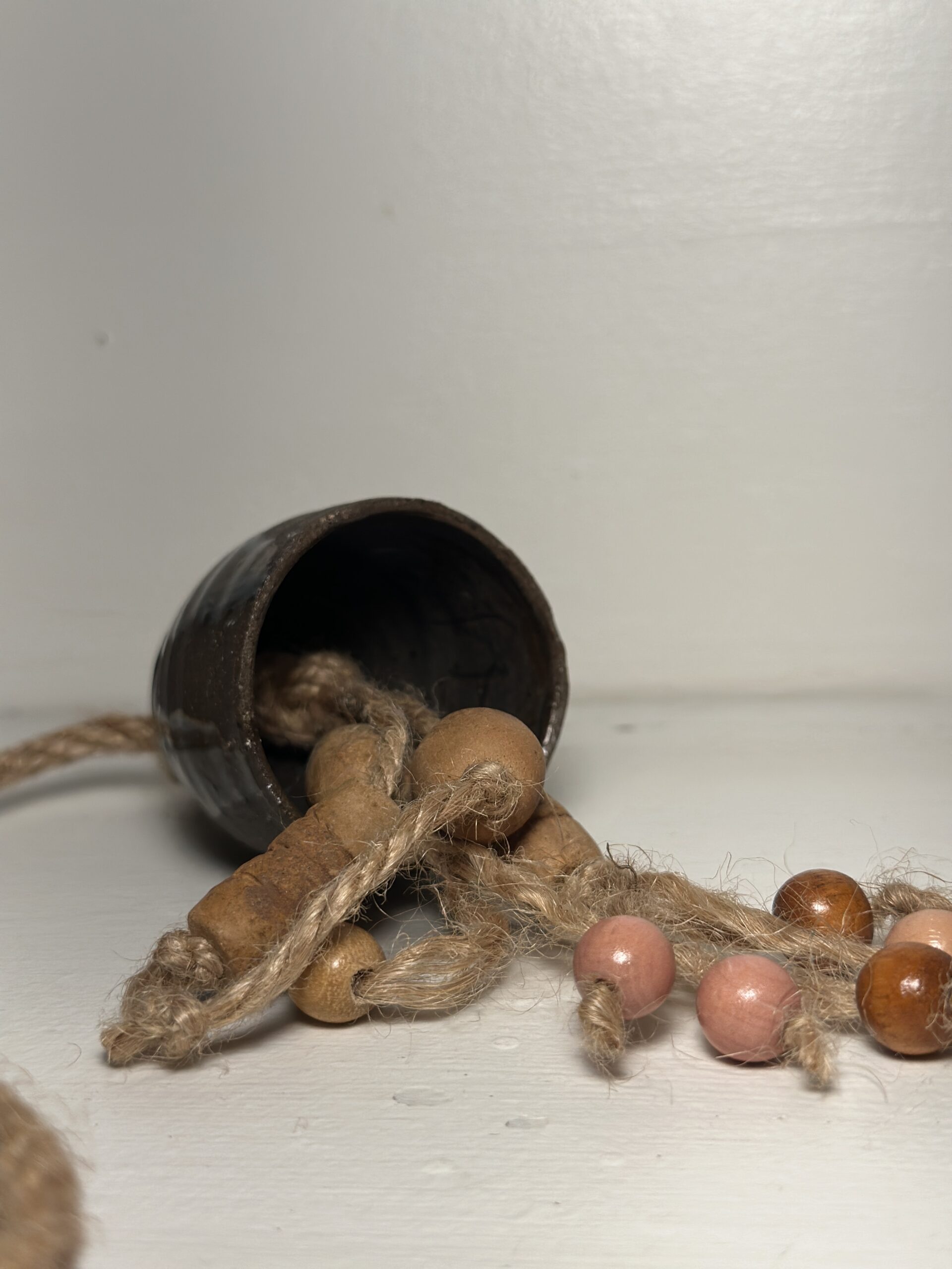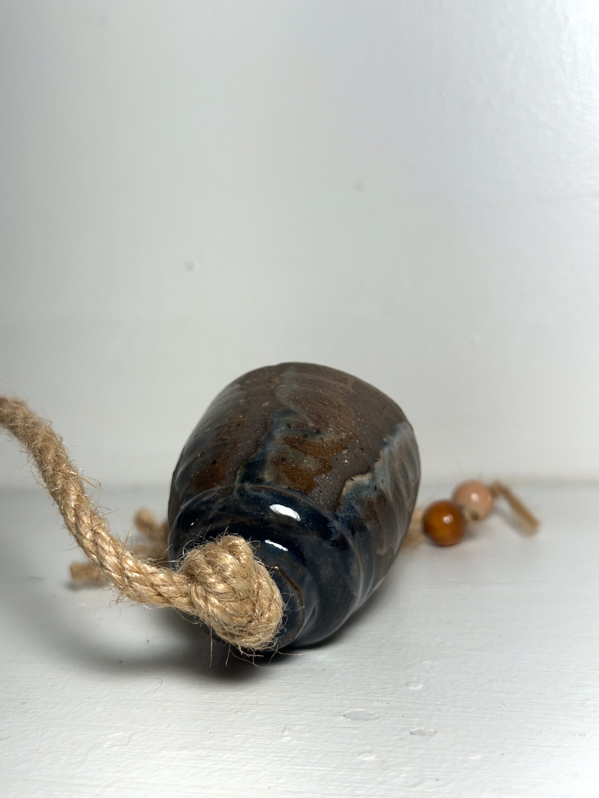 Beautiful Kentucky Mudworks Elk Horn clay with celedon storm glaze. They have a nice chiming sound with a jute rope adorned with vintage clay and wooden beads. I like to use them for my doors, they each have a unique ring. Small 2″ tall x 1-1/2″ wide. Think Ancient Modern sound. 🙂 Shipping Included!